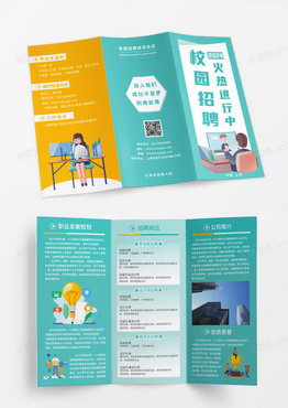 蓝色扁平化风格创意校园招聘宣传三折页设计