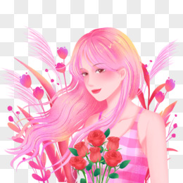 手绘插画噪点肌理风粉色调唯美女性手捧花元素