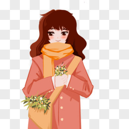 手绘唯美冬日少女插画元素