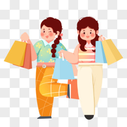 创意插画开心购物买买买女生