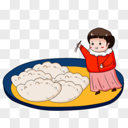 冬至吃饺子的女孩插画