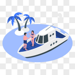 插画风男女站在游艇上聊天场景元素