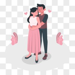 插画风男生从后面搂抱女生场景元素