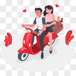 插画风情侣骑电动车场景元素