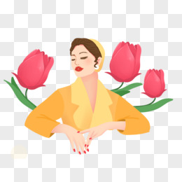 手绘插画风气质女士和郁金香素材