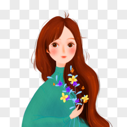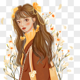 手绘插画风长发美女元素