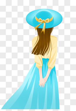 手绘唯美清新扁平风女孩背影素材