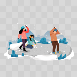下雪天大学生快乐打雪仗插画元素