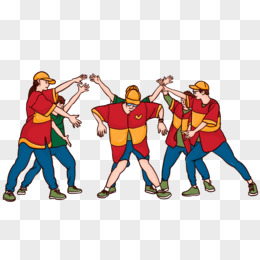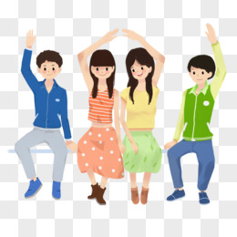 卡通手绘免抠一群男孩欢呼元素