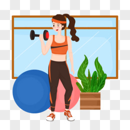 手绘风女孩举重人物插画素材