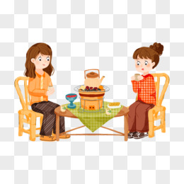 古风人物喝茶聚会姐妹围炉煮茶手绘元素