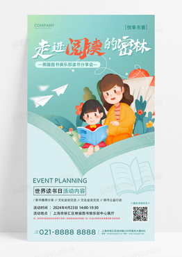 活动促销绿色插画简约世界读书日活动手机宣传海报读书分享会