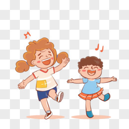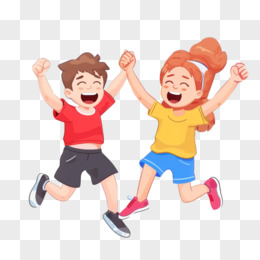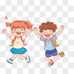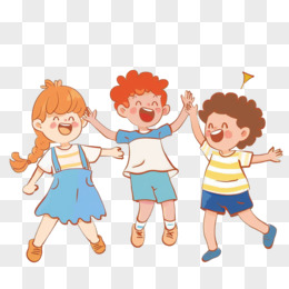 手绘小朋友手拉手跳跃欢呼免抠元素