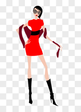 卡通手绘女人试穿衣服拍照免抠元素