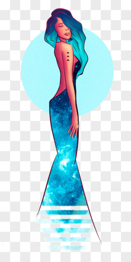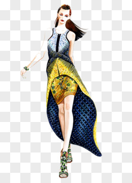 手绘长发晚礼服女人