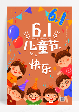 橘色六一儿童节欢乐活泼人物插画