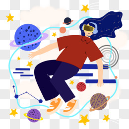 卡通创意矢量虚拟VR人物探索宇宙素材