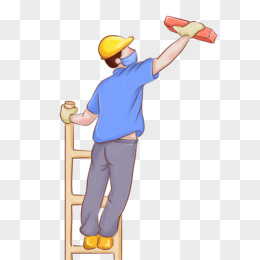 扁平卡通工人从扶梯上摔落免抠素材