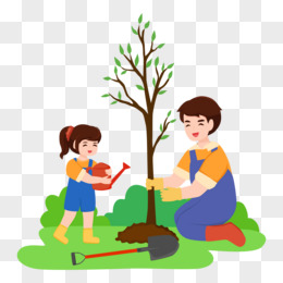 矢量亲子种树人物免抠元素