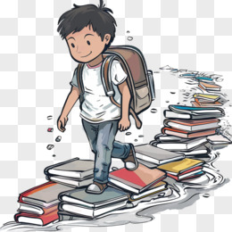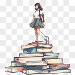 插画人物和书本场景免抠元素