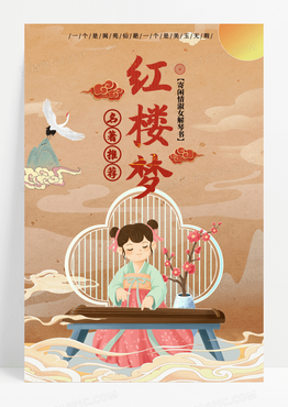 黄色复古卡通简约红楼梦名著推荐海报设计