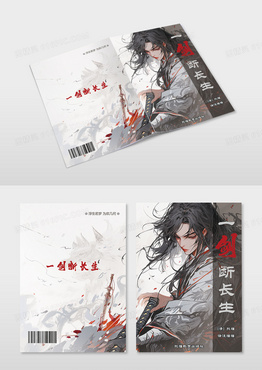 黑色梦幻仙侠漫画人物一剑断长生书籍封面