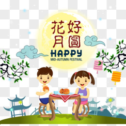 卡通手绘妈妈带小孩和舞狮子的人玩耍免抠元素