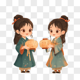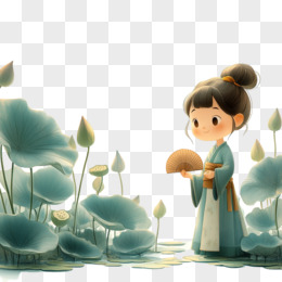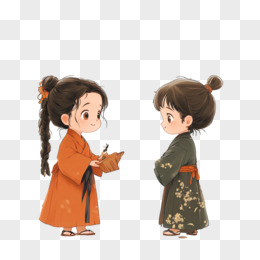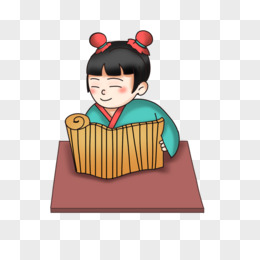卡通手绘小女孩吃饭香喷喷免抠元素