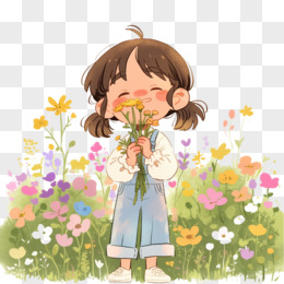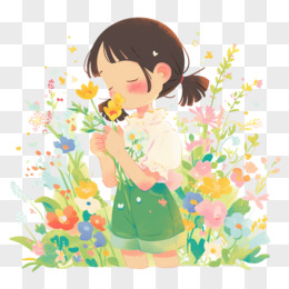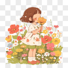 人物小女孩闻花香免抠元素