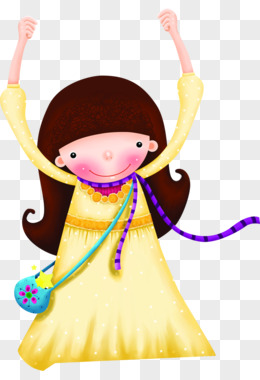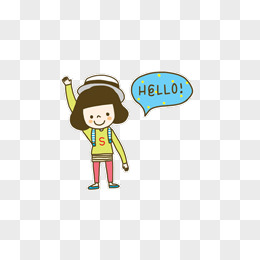 卡通手绘小女孩胆怯着打招呼免抠元素