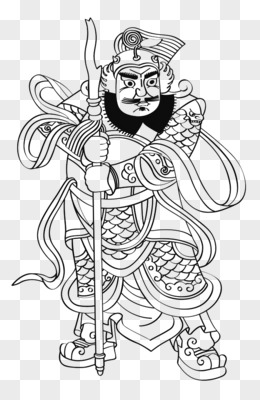 卡通国潮门神形象插画元素