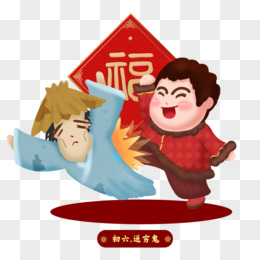 手绘大年初六传统习俗送穷鬼场景免抠元素