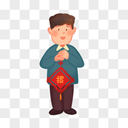 手绘卡通男人初一拜大年免抠元素