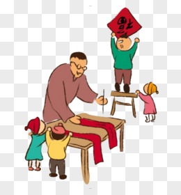 手绘卡通一家三口初三贴赤口免抠元素