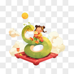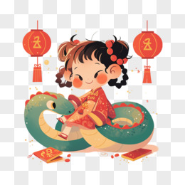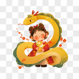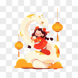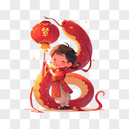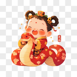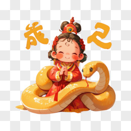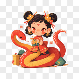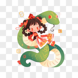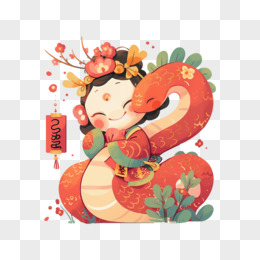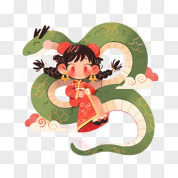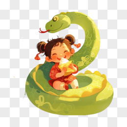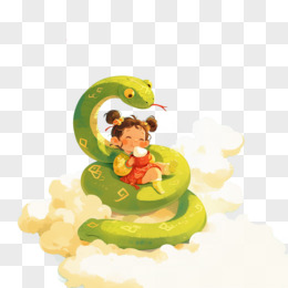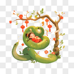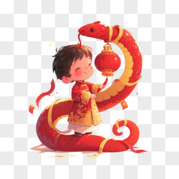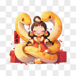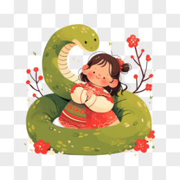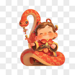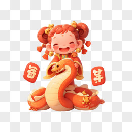 3D插画风格卡通蛇新年人物与蛇免抠元素