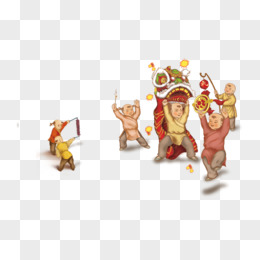 插画人物舞狮子免抠元素