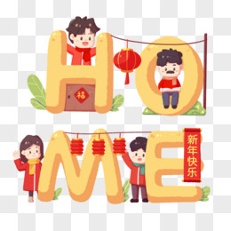 手绘插画新年创意home字母人物创意场景素材