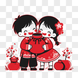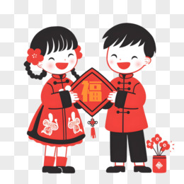 剪纸新年人物福娃免抠元素