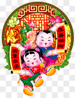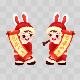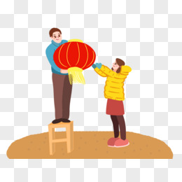 手绘线描剪纸风男孩女孩赏花灯免抠元素