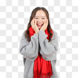 实拍单手捂脸拿红包的长发女孩免抠元素
