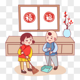 手绘卡通团圆温馨年夜饭场景免抠元素