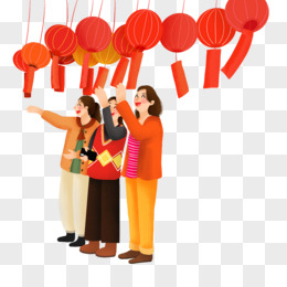 手绘老奶奶教孩子们剪窗花场景免抠素材