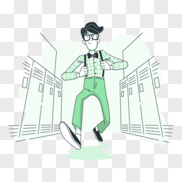 手绘男孩光脚在沙滩上奔跑免抠元素