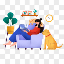 手绘卡通铲屎官给狗子剪毛免抠元素