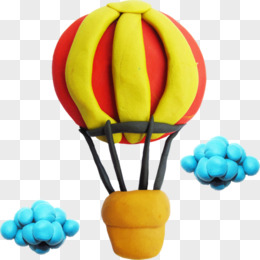 卡通小伙伴坐彩色热气球打招呼的画面元素