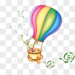 一组儿童节六一贴纸合集之六一女孩坐热气球素材