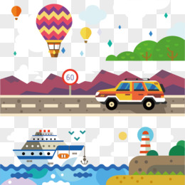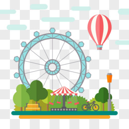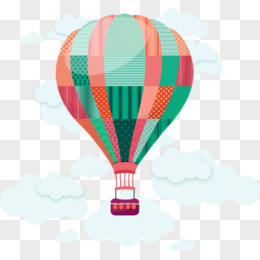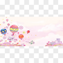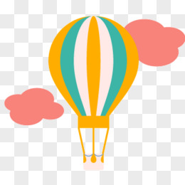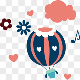 卡通小伙伴坐彩色热气球打招呼的画面元素