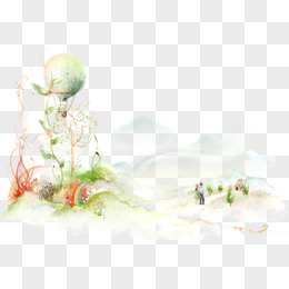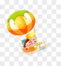卡通手绘两个小朋友在热气球上打招呼免抠元素