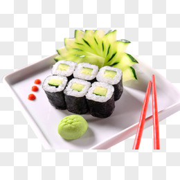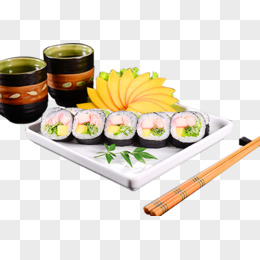 手绘卡通寿司茶酱油碟餐具免抠素材