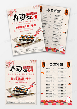 文艺简约日本寿司餐饮宣传单